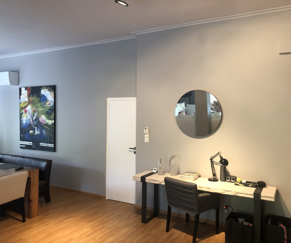 Η αναβάθμιση των εσωτερικών χώρων πραγματοποιήθηκε με επιλογή υλικών άριστης ποιότητας και την εφαρμογή σύγχρονων σχεδιαστικών λύσεων. Ενσωματώνοντας νέες τεχνολογίες και έξυπνη διαρρύθμιση, εξασφαλίσαμε ένα αποτέλεσμα που μεγιστοποιεί τη λειτουργικότητα, αποπνέοντας παράλληλα διαχρονική κομψότητα.