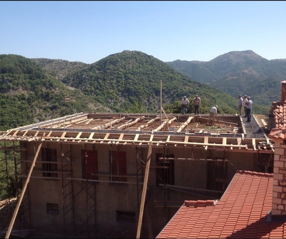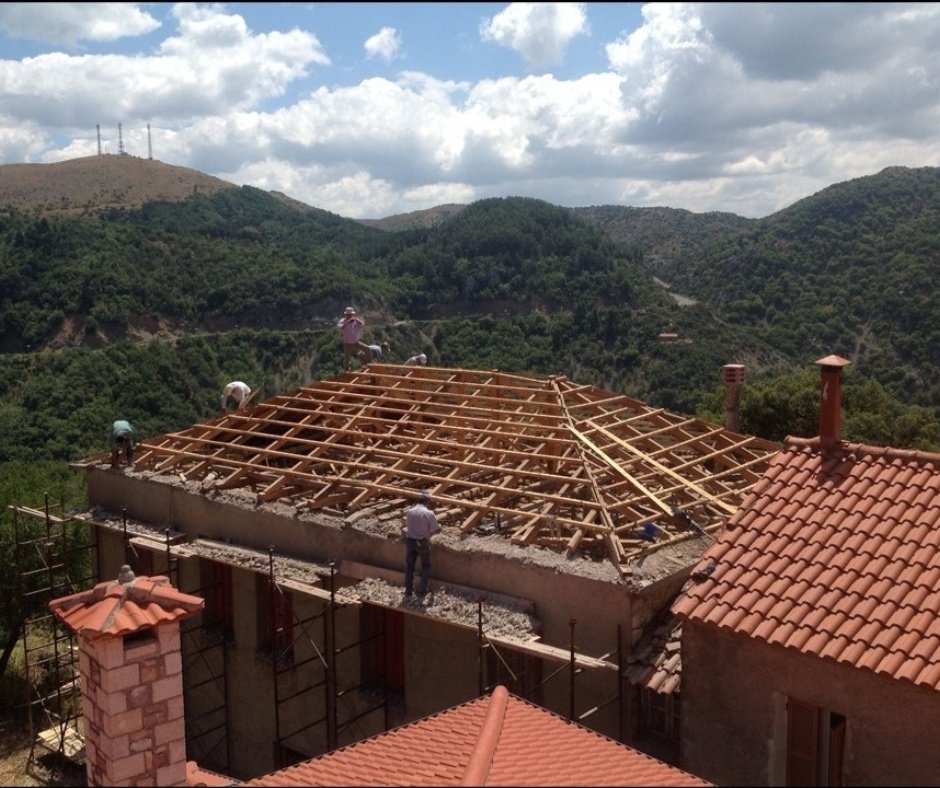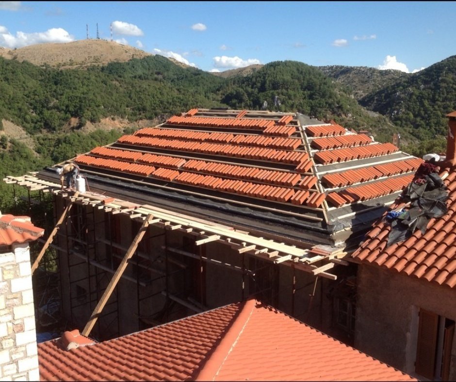 Η κατασκευή της κεραμοσκεπής πραγματοποιήθηκε με τη χρήση υλικών ύψιστης ποιότητας, όπως σύνθετη επικολλητή ξυλεία και ανθεκτικά κεραμίδια. Οι επιλογές αυτές εξασφαλίζουν τεράστια αντοχή στις απαιτητικές καιρικές συνθήκες του βουνού (παγετός, χιόνι, ισχυροί άνεμοι) και μακροχρόνια ανθεκτικότητα. Οι εξειδικευμένοι τεχνίτες μας δημιούργησαν μια στέγη που εναρμονίζεται πλήρως με την τοπική πέτρινη αρχιτεκτονική, υπογραμμίζοντας τη δέσμευσή μας για ποιοτικά έργα με ιδιαίτερες αρχιτεκτονικές απαιτήσεις.