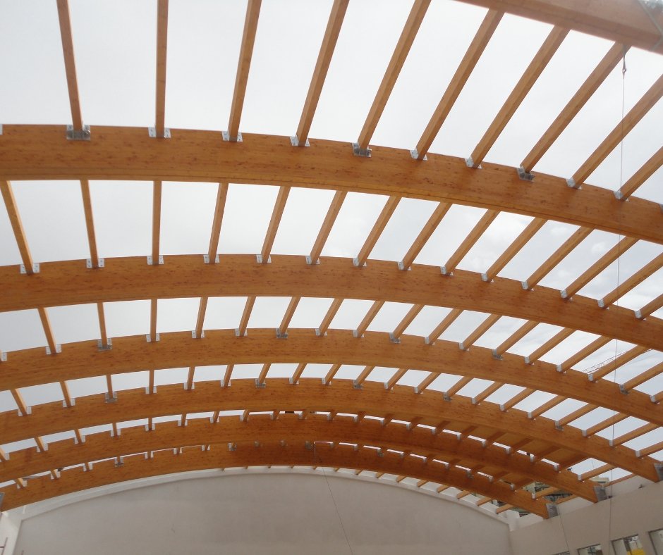 Η χρήση σύνθετης επικολλητής ξυλείας επιτρέπει την κάλυψη αθλητικών γηπέδων χωρίς εμπόδια στον αγωνιστικό χώρο.