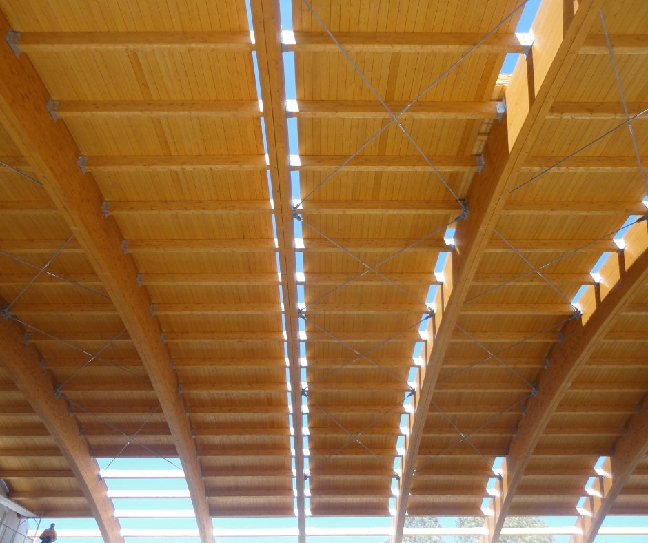 Χρησιμοποιώντας επικολλητή ξυλεία (Glulam) και σύγχρονες τεχνικές κατασκευής, επιτύχαμε την κάλυψη μεγάλων ανοιγμάτων χωρίς την ανάγκη ενδιάμεσων υποστυλωμάτων. Η κατασκευή διασφαλίζει μέγιστη ανθεκτικότητα, άριστη αντισεισμική συμπεριφορά και εξαιρετική αισθητική απόδοση που αναβαθμίζει τη συνολική εμπειρία των χρηστών.