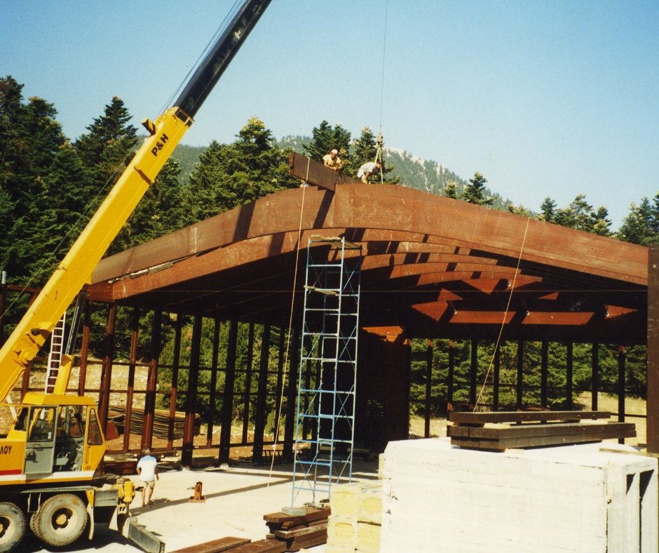 Για την υλοποίηση των απαιτητικών ξύλινων τόξων της στέγης, επιλέχθηκε ως προμηθευτής η ιστορική βιομηχανία ΑΒΕΞ Πάτρας (1922). Η τεχνογνωσία της ΑΒΕΞ στην παραγωγή δομικής ξυλείας μεγάλων ανοιγμάτων και ειδικών καμπυλωτών στοιχείων, αποτέλεσε εγγύηση για τη στατική επάρκεια και τη διαχρονική αντοχή του έργου στις δύσκολες καιρικές συνθήκες του Παρνασσού.