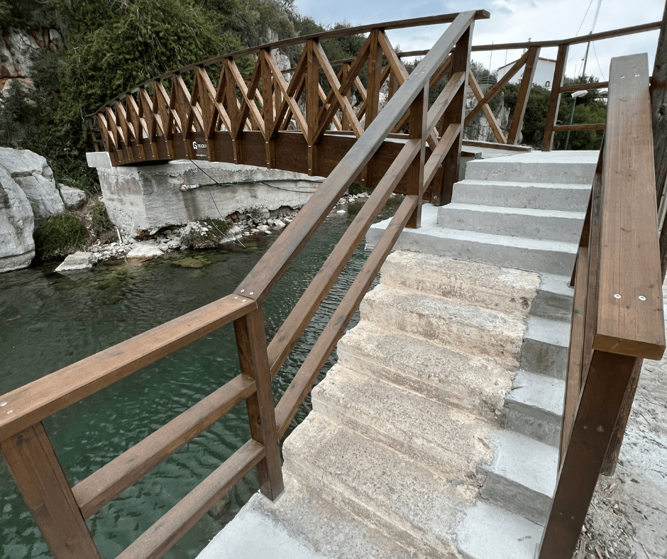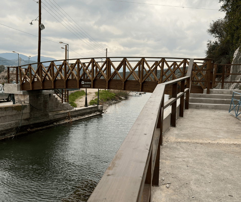 Η Γκιώκας Τεχνική Κατασκευαστική ολοκλήρωσε την κατασκευή μιας νέας ξύλινης πεζογέφυρας στον Δήμο Επιδαύρου. Το έργο σχεδιάστηκε με κύριο γνώμονα την αρμονική ένταξη στο ιδιαίτερο φυσικό κάλλος της περιοχής, προσφέροντας παράλληλα έναν ασφαλή διάδρομο για τους πεζούς.