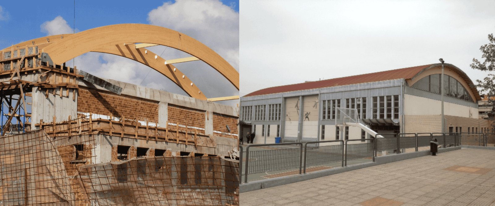 Η τεχνολογία Σύνθετης Επικολλητής Ξυλείας (Glulam) επιτρέπει την κατασκευή δοκών μεγάλου μήκους, ιδανικών για μεγάλες αθλητικές εγκαταστάσεις.