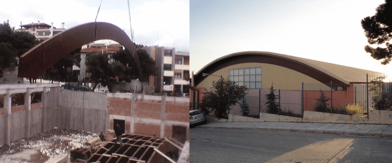 Η Γκιώκας Τεχνική Κατασκευαστική διαθέτει πολυετή εμπειρία στην κατασκευή στεγών για κλειστά Γυμναστήρια και Αίθουσες Πολλαπλών Χρήσεων (Α.Π.Χ.), σε συνεργασία με τον Οργανισμό Σχολικών Κτιρίων (Ο.Σ.Κ.). Η γεφύρωση τεράστιων ανοιγμάτων, χωρίς τη χρήση ενδιάμεσων υποστυλωμάτων, απαιτεί απόλυτη στατική ακρίβεια και εξειδικευμένη τεχνογνωσία.