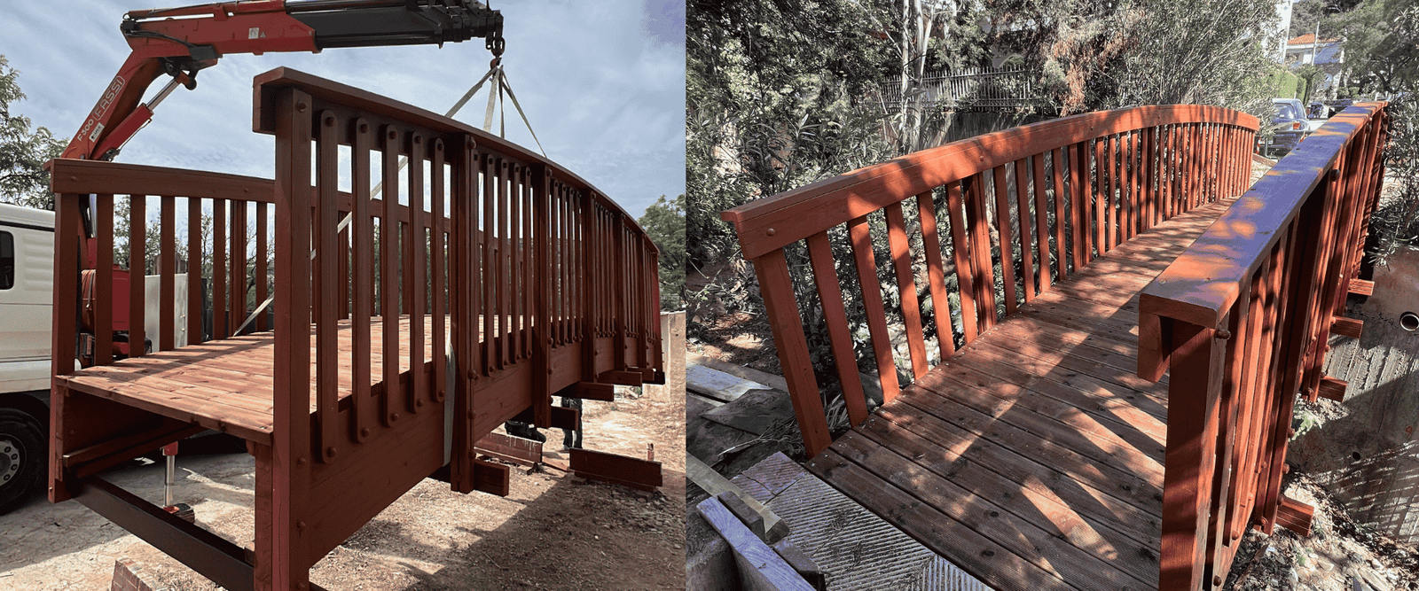 Η βάση κάθε γέφυρας είναι το υλικό. Επιλέγουμε αποκλειστικά ξυλεία υψηλής αντοχής, εμποτισμένη σε κενό αέρος για προστασία από μύκητες και έντομα. Σε παραθαλάσσια έργα, η αντοχή στην αλμύρα είναι αδιαπραγμάτευτη.